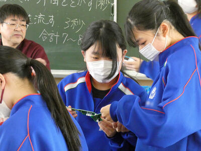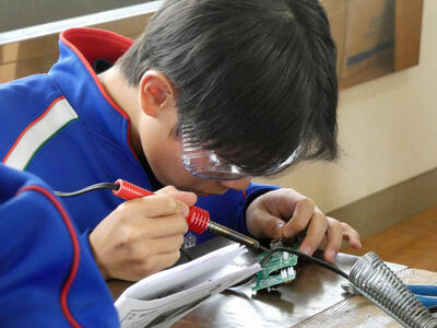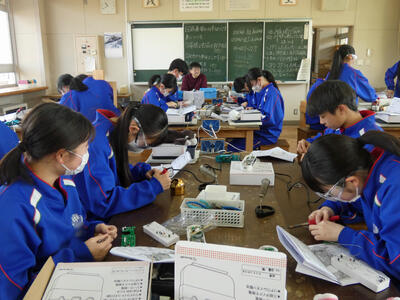 2月12日(木) 3校時の授業 投稿: 松陽中学校代表 (02/12) カテゴリー: 今日の出来事 2年2組 技術 もしもの時に役立つ「あんしんライト」製作中 先生のアドバイスを真剣に聞き、回路のはんだ付けに集中して取り組んでいました。 -
