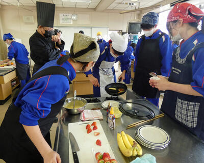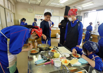 どの班も、食べる幼児の笑顔を想像しながら、仲間とアイデアを出し合ったりして、オリジナリティあふれる一皿を完成させていました。