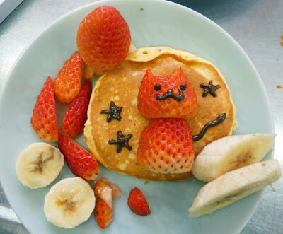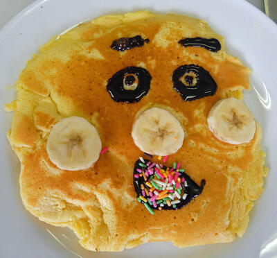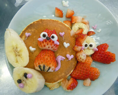 幼児のおやつは、体の小さい子どもが朝食、昼食、夕食ではとりきれない栄養を補う大切な役割があります。甘さを抑えた菓子として、パンケーキをつくりました。