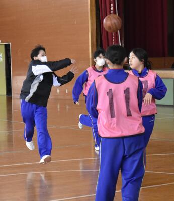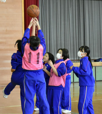 1年1組 保健体育 バスケットボールゲーム 男女とも積極的に取り組んでいました。
