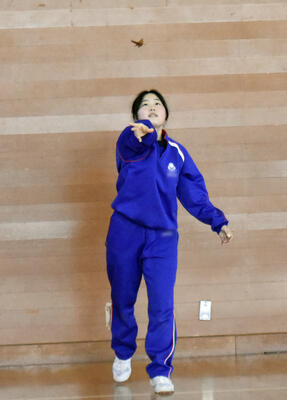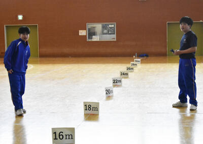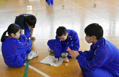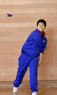 1年2組 数学今日は1年2組が紙飛行機を1人100回飛ばし、飛距離の記録を取りました。