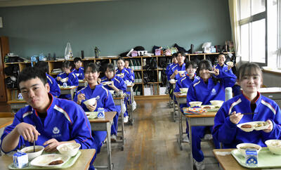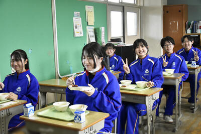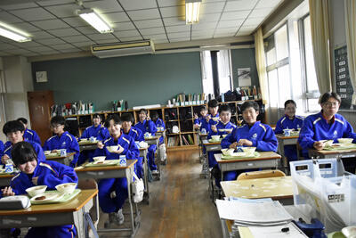 2年生の様子です。和やかな雰囲気で食事が進んでいました。来年度、3年生になっても、感謝の気持ちを忘れずに楽しい食事の時間を過ごしてほしいと思います。